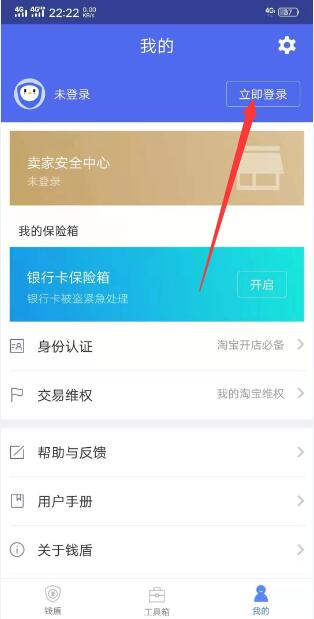 以上步骤登录了之后 点击下面的菜单栏的“钱盾” 选项卡