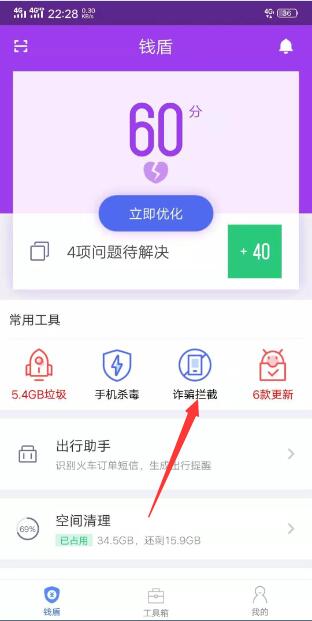 6、在 “常用工具” 里面点击 “诈骗拦截”