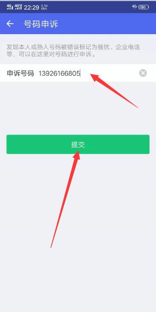8、输入 申诉号码 然后点击 提交