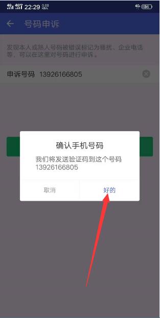 9、提示会发送 验证码到申诉号码手机上,直接点击 “好的”